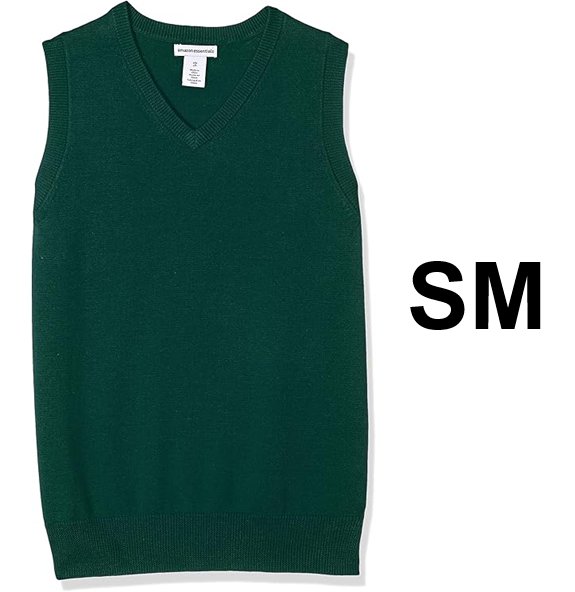 BOYS Amazon Essentials Uniform Cotton V-Neck Sweater Vest - SMALL - DARK GREEN