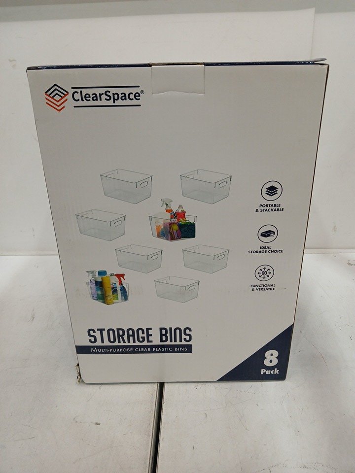 8PK CLEARSPACE MULTI-PURPOSE CLEAR PLASTIC STORAGE BINS - 11" x 8" x 6" - clear