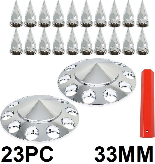 23pc antuko abs front axle cover set with hub caps and screw on spiked lug nut covers for semi truck - 33mm screws - chrome