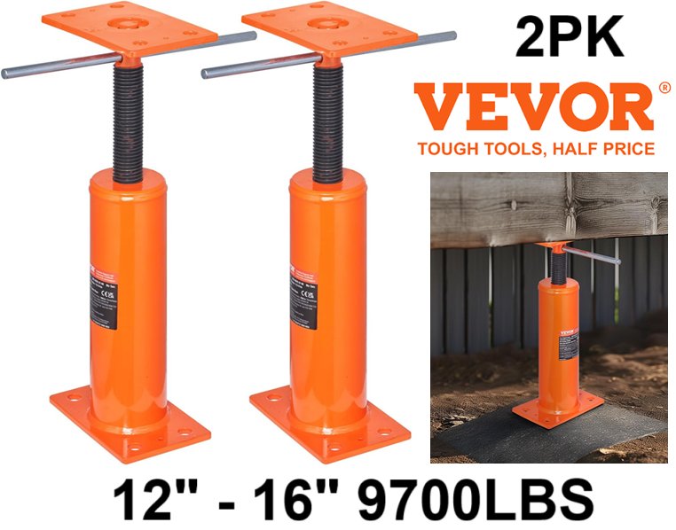 2PK vevor house floor jacks beam support - 9700lbs max - 12"-16" - orange - (model: 204A-0045-01-00)