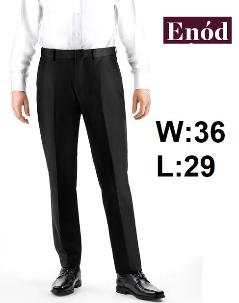 MEN'S ENOD BY ARMANDO WOOL SEMI-STRETCH CLASSIC FIT HIGH CROTCH DRESS PANTS - 36W X 29L - BLACK (STYLE: C099)