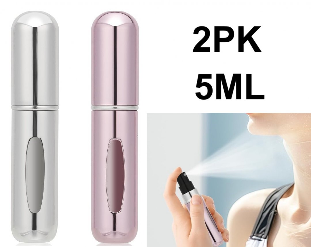 2Pc Ejfete Mini Refillable Perfume TRAVEL Bottle - 5ML - Pink/silver