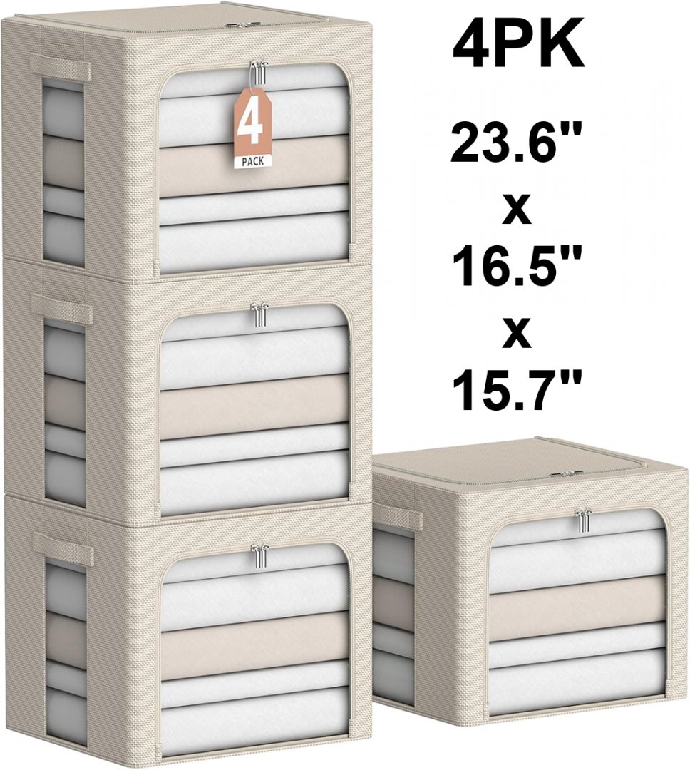 4PK foldable and stackable clothing storage bins - 23.6" x 16.5" x 15.7" - beige