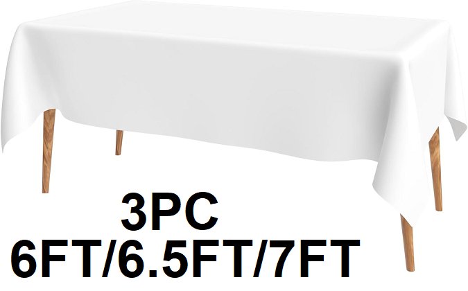 3PC romantic table cloth - 2FT x 6FT/3FT x 6.5FT/4FT x 7FT - white