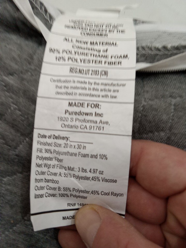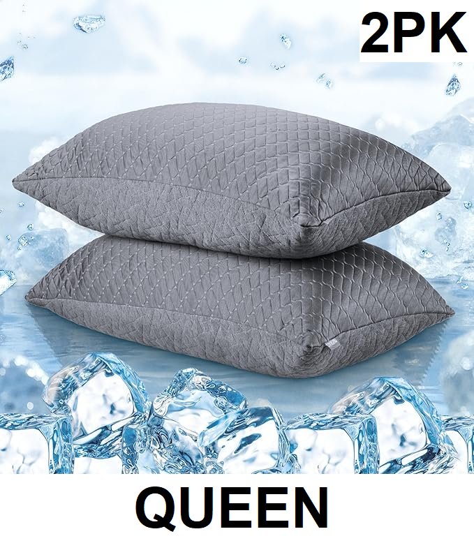 2pk puredown memory foam colling pillow with bamboo covers - queen - dark grey
