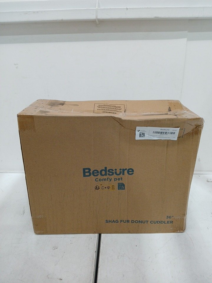 bedsure fluffy faux fur donut shaped pet bed for dog or cat - 36" - grey