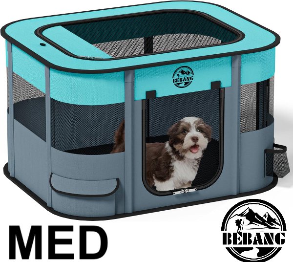 bebang indoor/outdoor waterproof lightweight portable foldable dog/cat playpen with carrying case - medium - blue