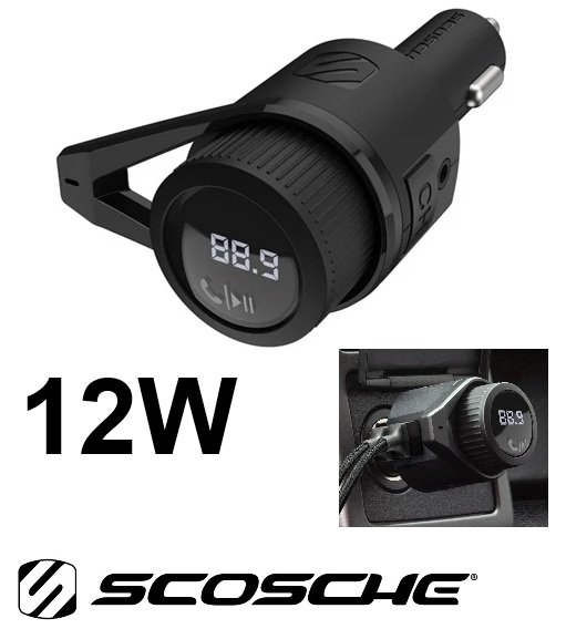 Scosche Bluetooth wireless Hands-Free Car Kit with Digital FM Transmitter and Dual USB Ports - 12W - black (model: BTFM5-SP)