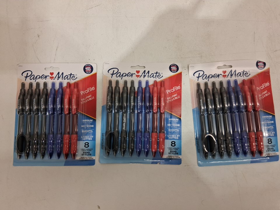 3PK Paper Mate Ballpoint Pens - Black/Red/Blue