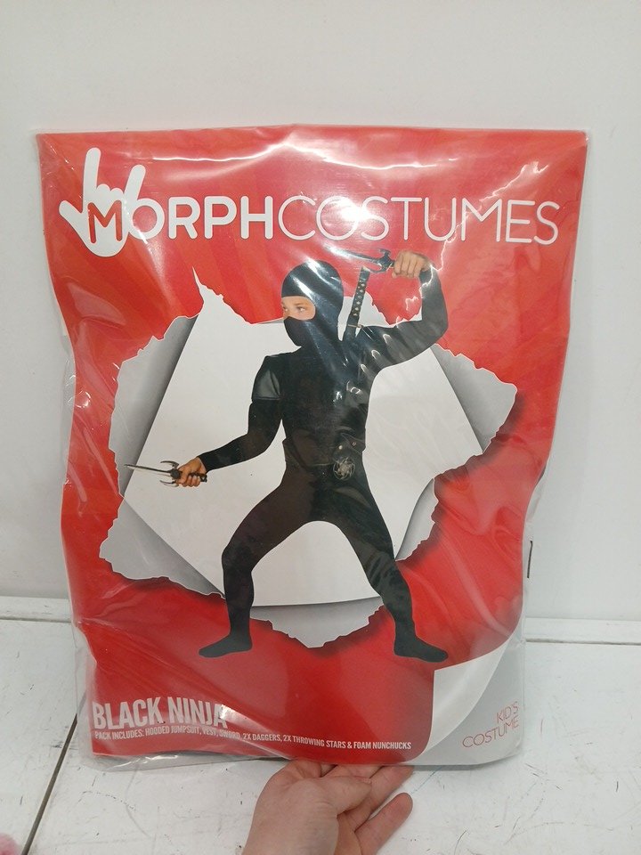 7pc unisex kids morph costumes black ninja costume with accessories - size SMALL - black