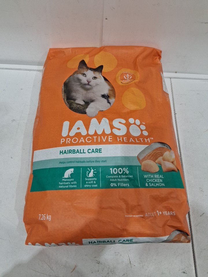 IAMS PROACTIVE HEALTH Adult Hairball Care Dry Cat Food, Chicken and Salmon, 7.26kg/16LBS bag