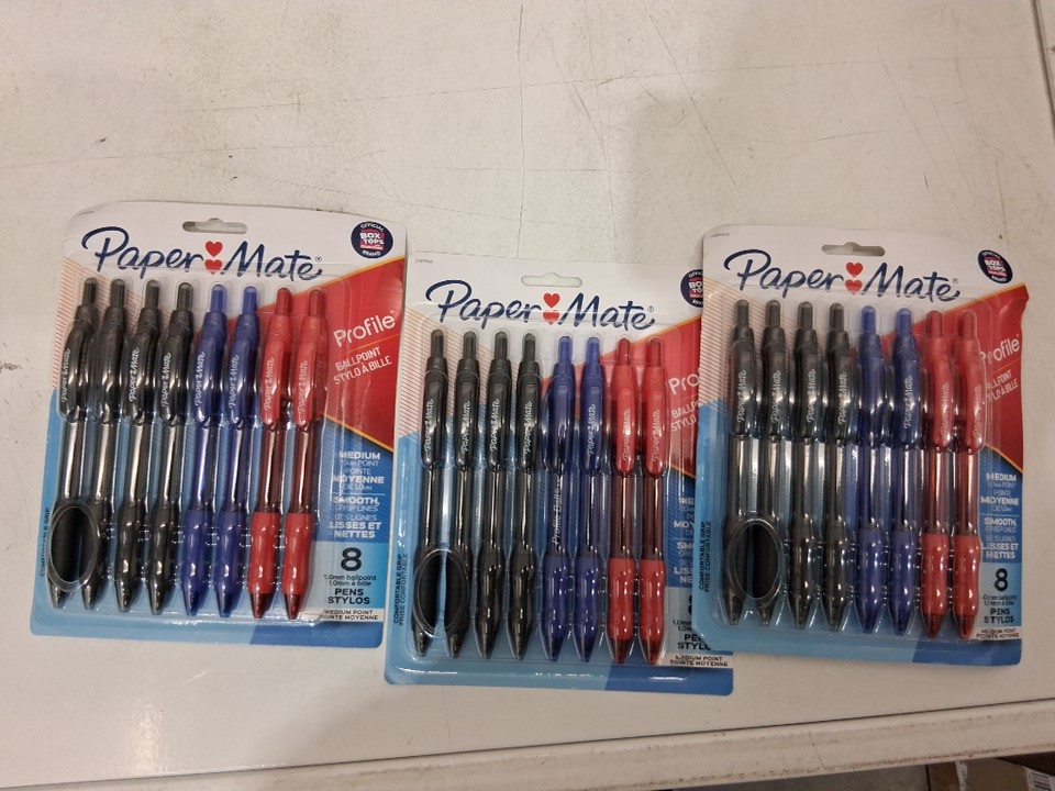 3PK Paper Mate Ballpoint Pens - Black/Red/Blue