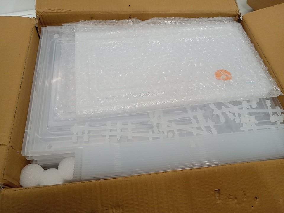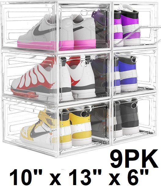 9pk durable solid plastic stackable shoe organizer with magnetic front door fits up to mens size 11 - 10" x 13" x 6" - clear