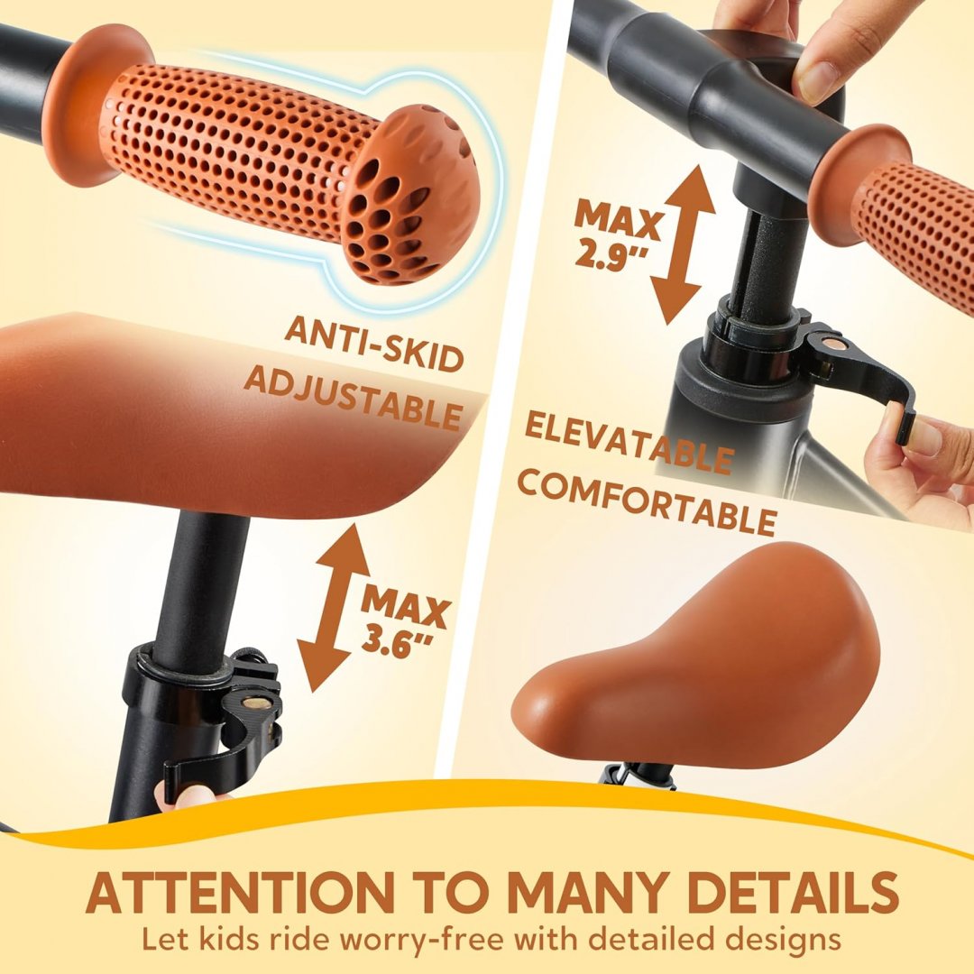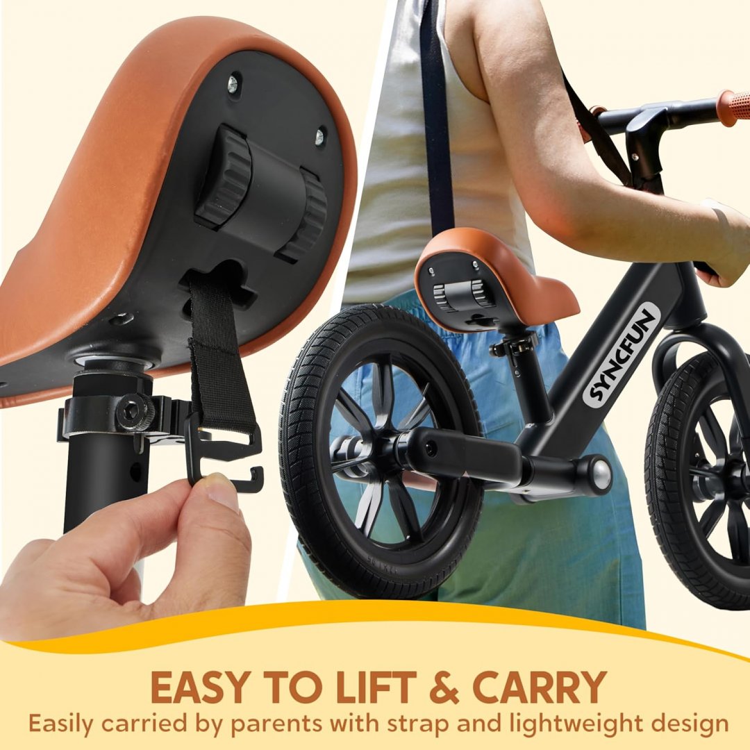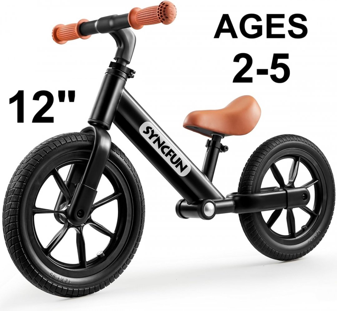 syncfun toddler balance bike with adjustable seat for ages 2-5 - 12" tires - black