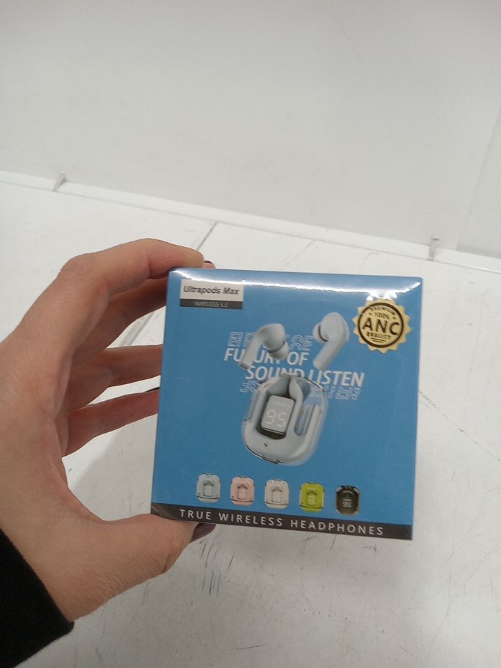 Ultrapods Max Air Wireless Earbuds Transparent Case WITH LED Display - BLUE