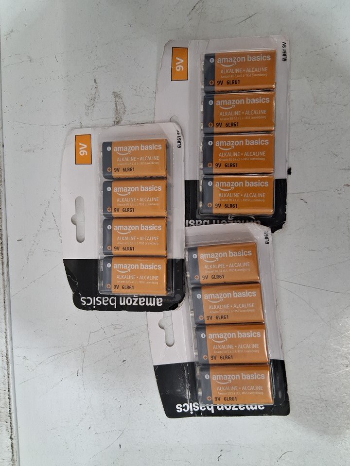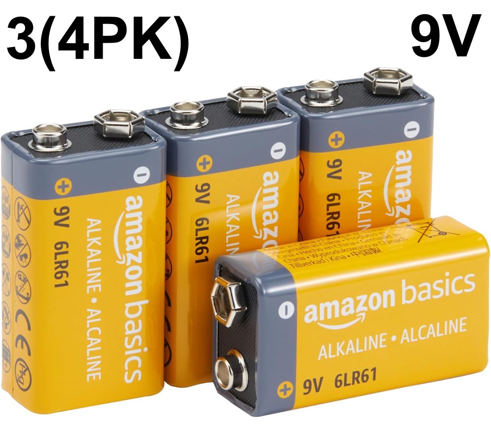 3(4PK) Amazon Basics Alkaline Batteries 5-year shelf life - 9V (model: 6lr61)
