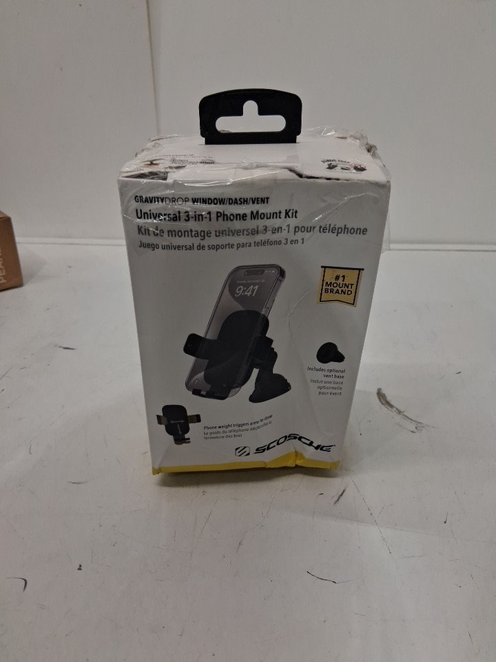 SCOSCHE 3-IN-1 UNIVERSAL vehicle gravity drop window / dash / vent phone mounting kit - black