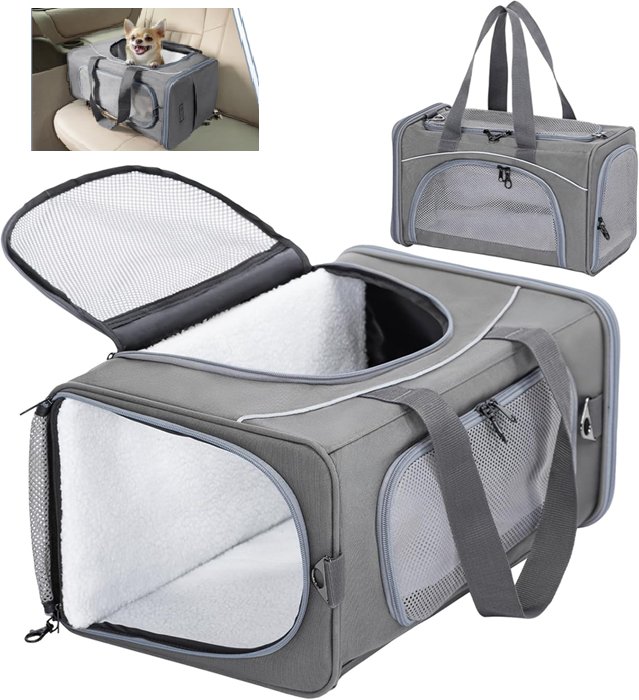 Petsfit Airline Approved Pet Carrier for Small Dogs & Cats - 18" x 8" x 11" - Grey - (Model: DCC1910024a1)