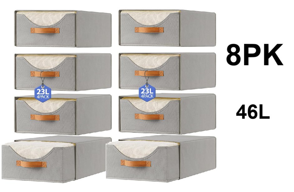 8pk baesyhom fabric storage pull out drawers- 46L total storage space -grey/brown