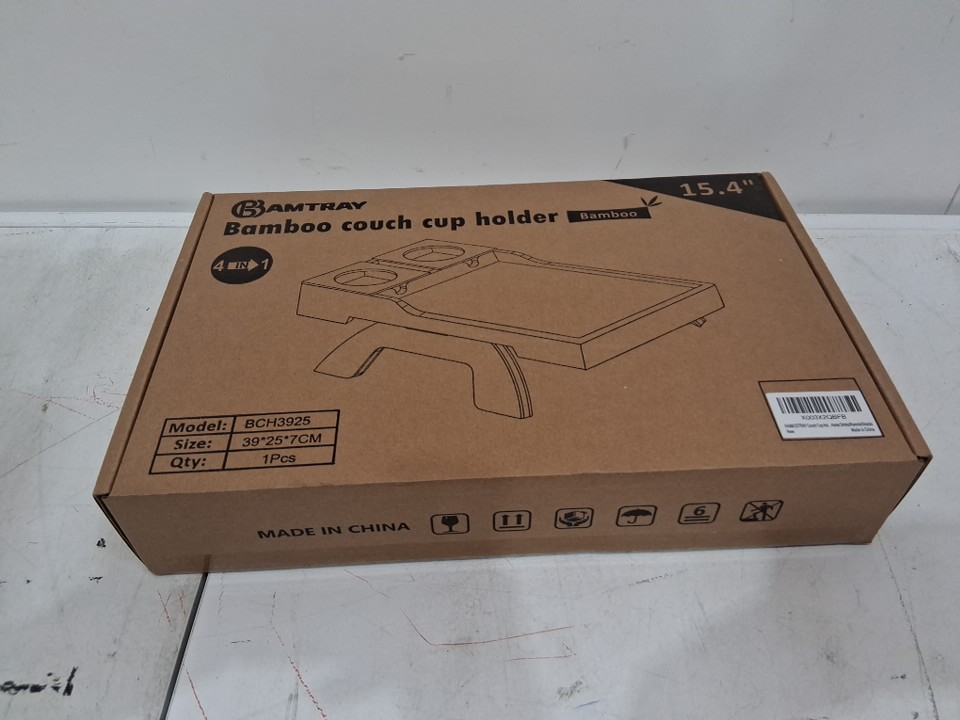 BAMBOOTRAY BAMBOO COUCH 4-IN-1 CUP HOLDER - 15.3" x 9.84" x 2.75" - GRAY (MODEL: BCH3925)