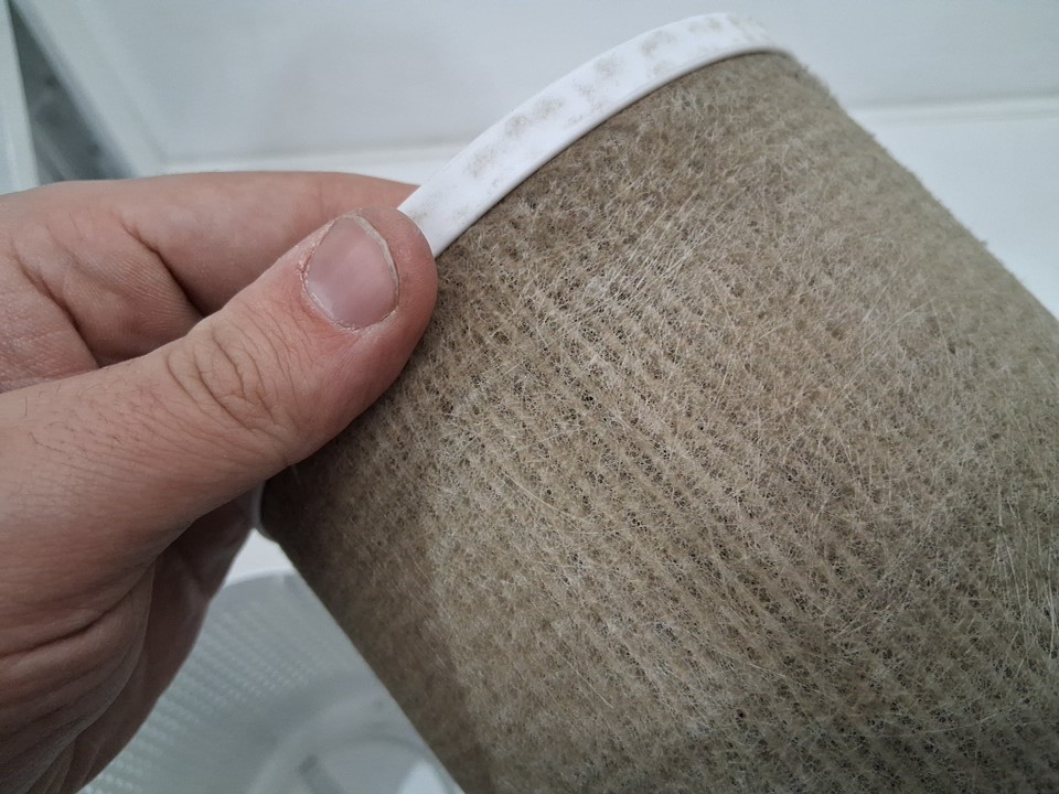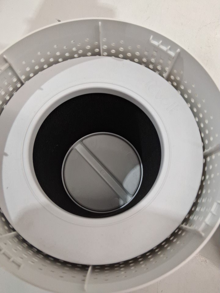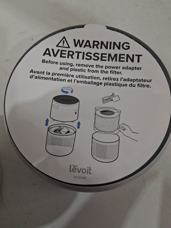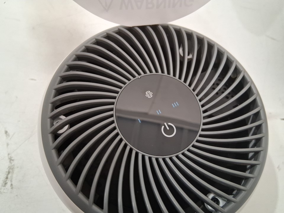 The power adapter is missing from the box, meaning we are unable to verify power or function. The filter is dirty indicating prior usage, but customer will need to provide their own replacement adapter in order to operate the purifier - see photos.