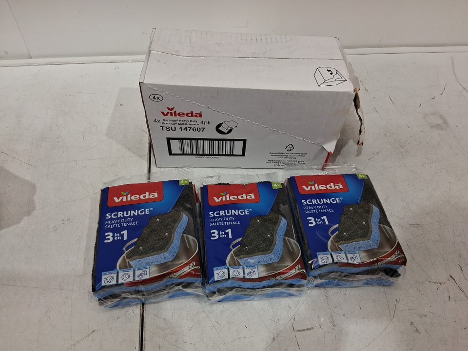 3(4PK) VILEDA SCRUNGE HEAVY DUTY 3 IN 1 NON SCRATCH SCRUB SPONGE (12 total)