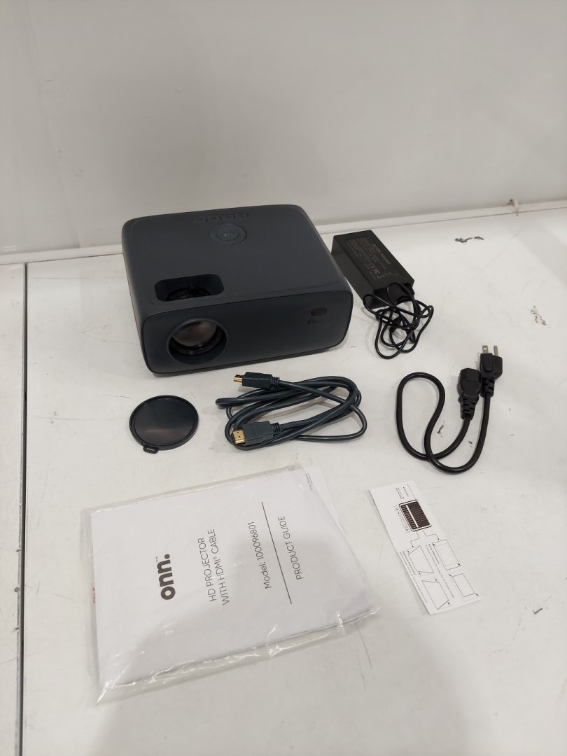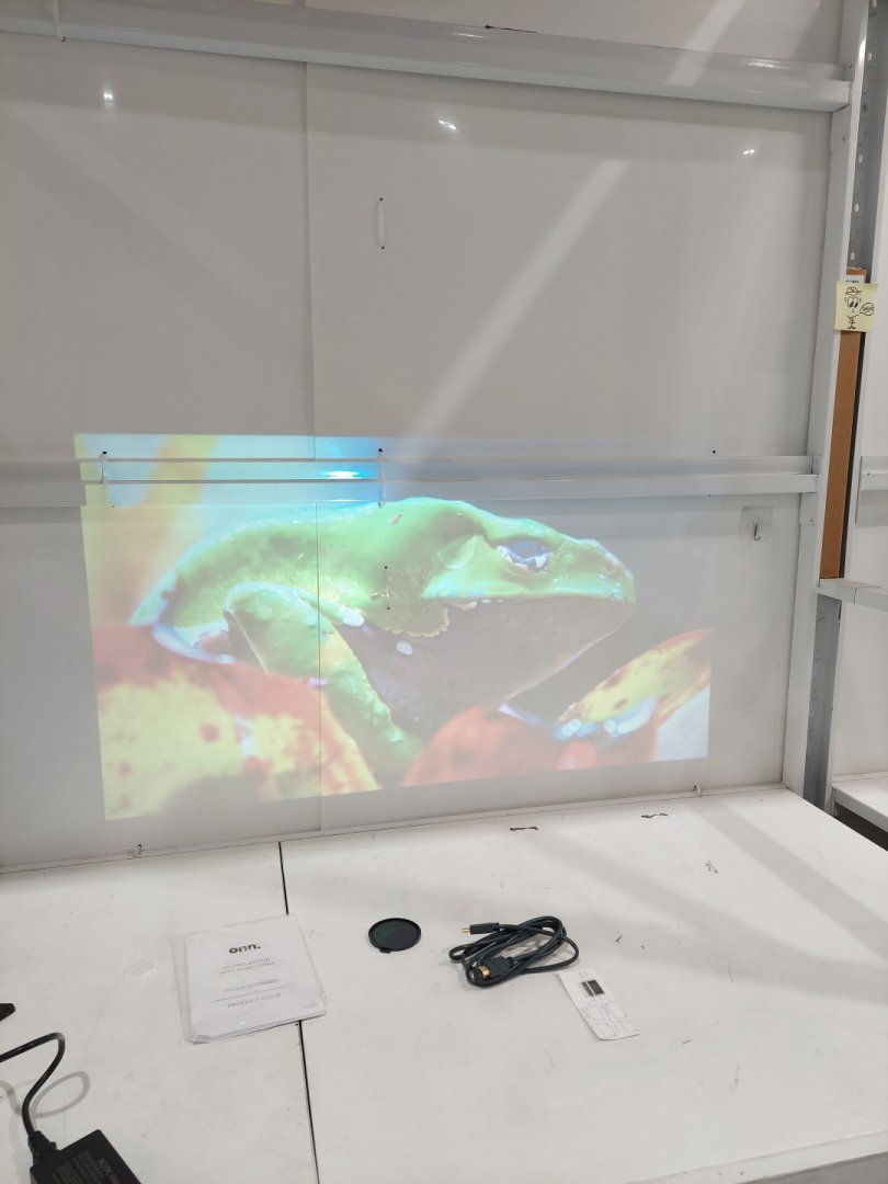 Item arrived without the remote control but this can be replaced and the projector has buttons that can be used instead. tested for power and function.