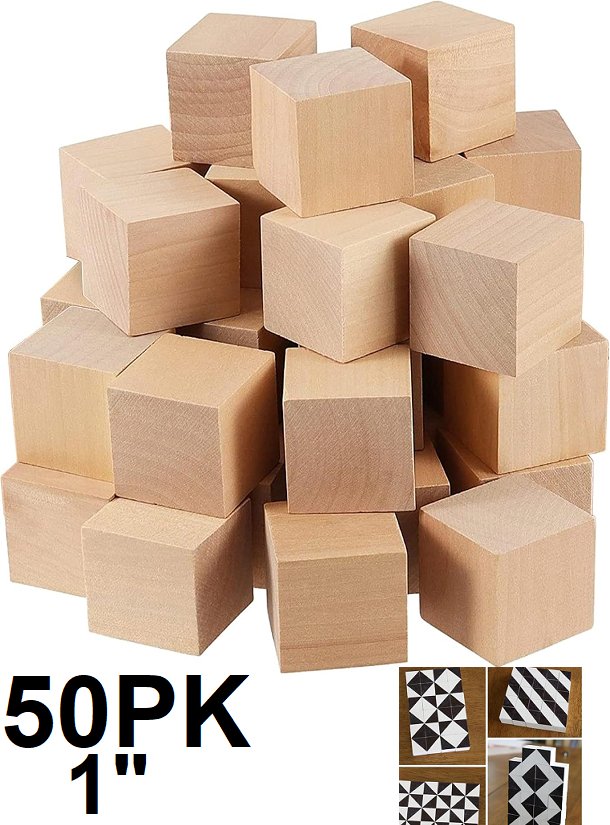 50PK WOODEN BUILDING BLOCKS FOR ARTS & CRAFTS - 1" - NATURAL