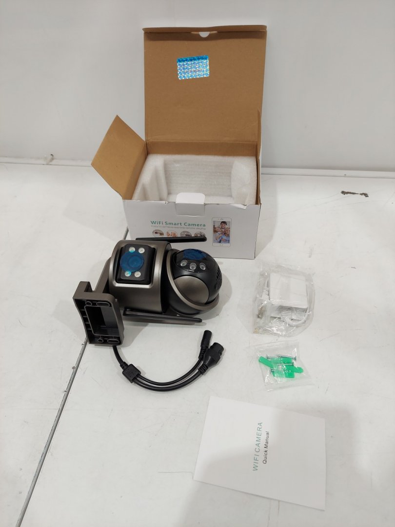 ICSEE OUTDOOR WIFI SMART CAMERA WITH AUDIO, CLOUD STORAGE, AUTO TRACKING - 8MP - 4K - SMART APP - GREY/BLACK (MODEL: 9774047833303)