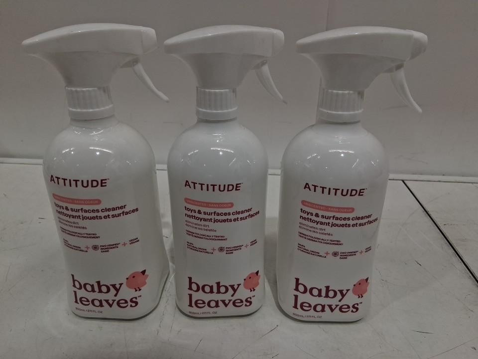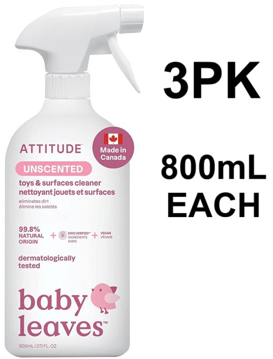 3PK ATTITUDE Baby Leaves Toy and Surface Cleaner - 800ml Each - Unscented