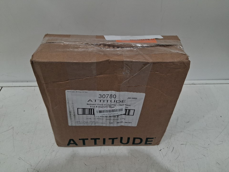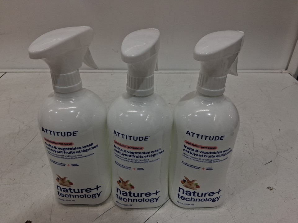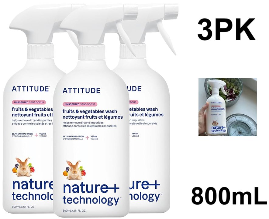 3PK ATTITUDE Nature + Technology Food-Safe Fruit & Vegetable Produce Wash - 800 mL Each - Unscented (Model: 30780)