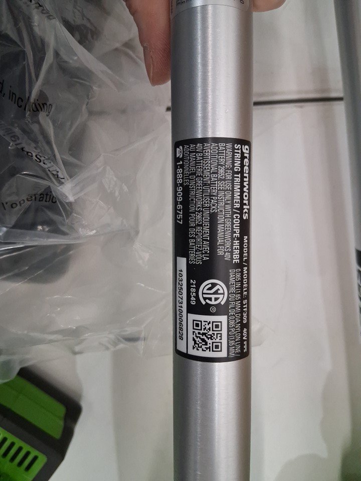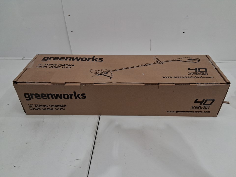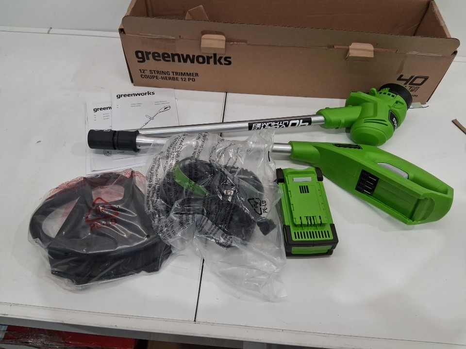 Greenworks 40v Cordless String Trimmer with battery & charger- 12"- green/black (Model: stf309)