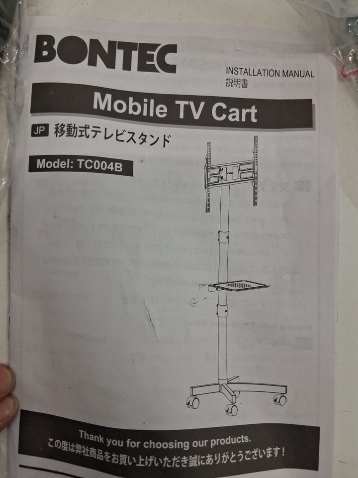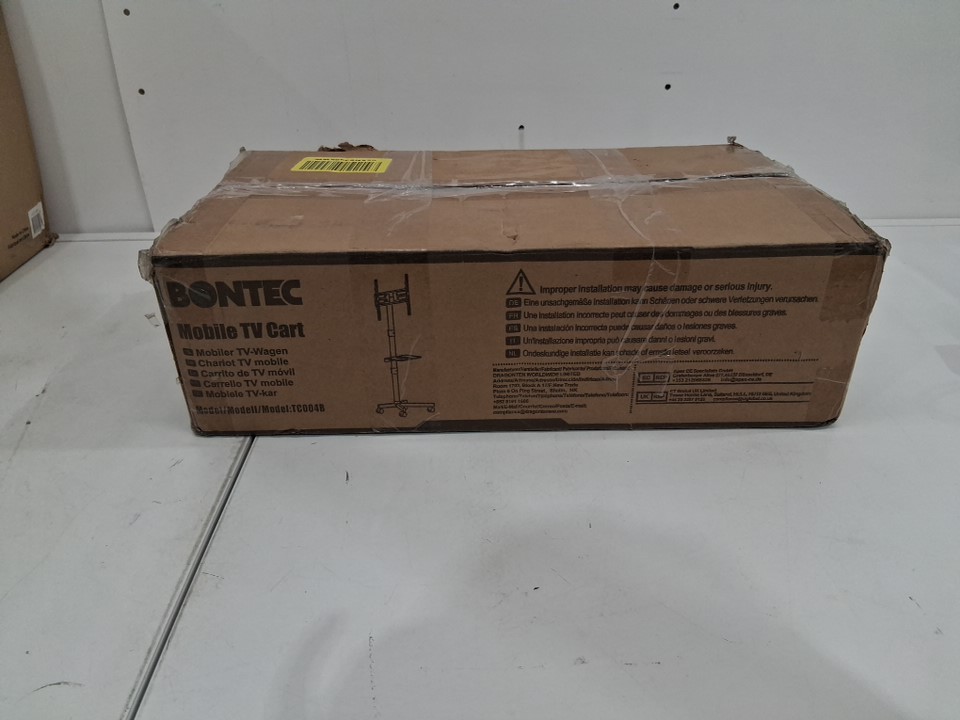 BONTEC Mobile Rolling TV Stand cart with media shelf and locking wheels - for 23-60" Screens, max 55lbs - black (model: tc004b)