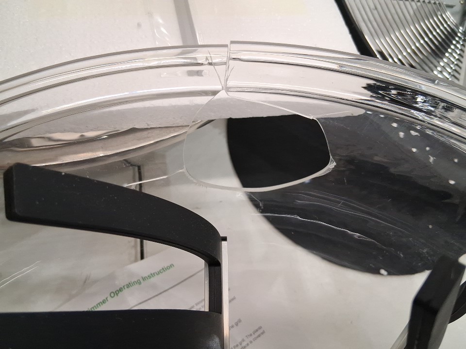 there is a crack in the plastic top. does not affect the use of the machine.
