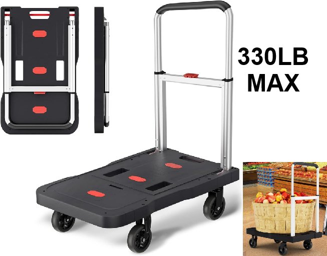 Heavy Duty Platform Hand Truck Portable Trolly -330LB MAX - black/red