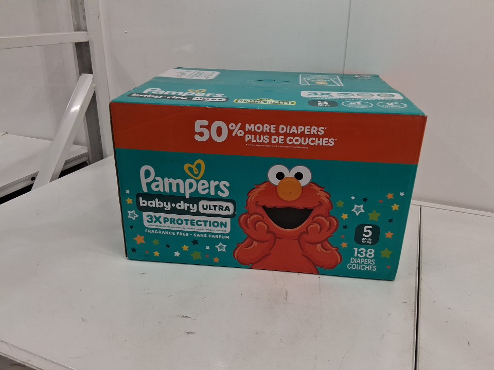 138PK PAMPERS BABY DRY ULTRA DIAPERS - SIZE 5 (20-37LBS) - SESAME STREET