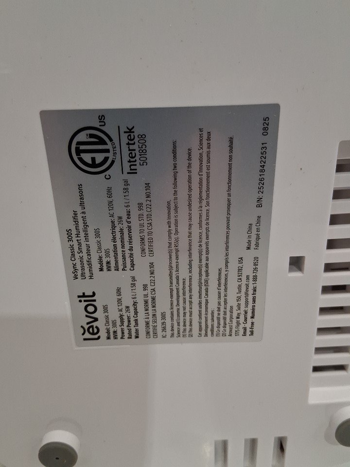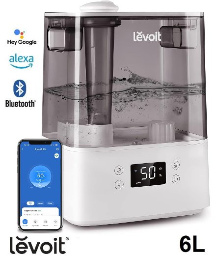 LEVOIT SMART COOL AIR HUMIDIFIER WITH ESSENTIAL OIL TRAY & BLUETOOTH COMPATIBILITY - 6L CAPACITY - WHITE/blue (MODEL: CLASSIC 300S)