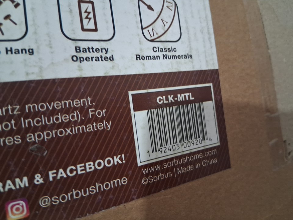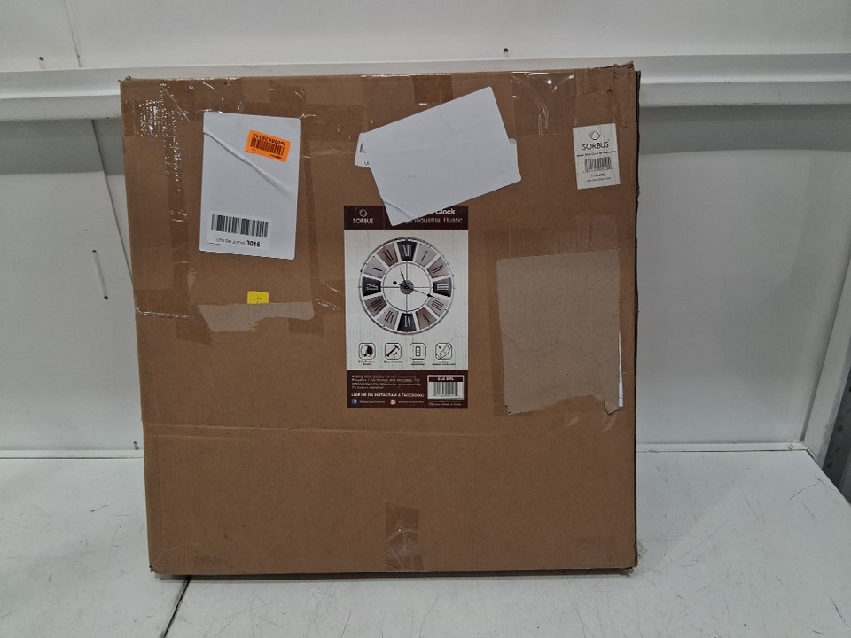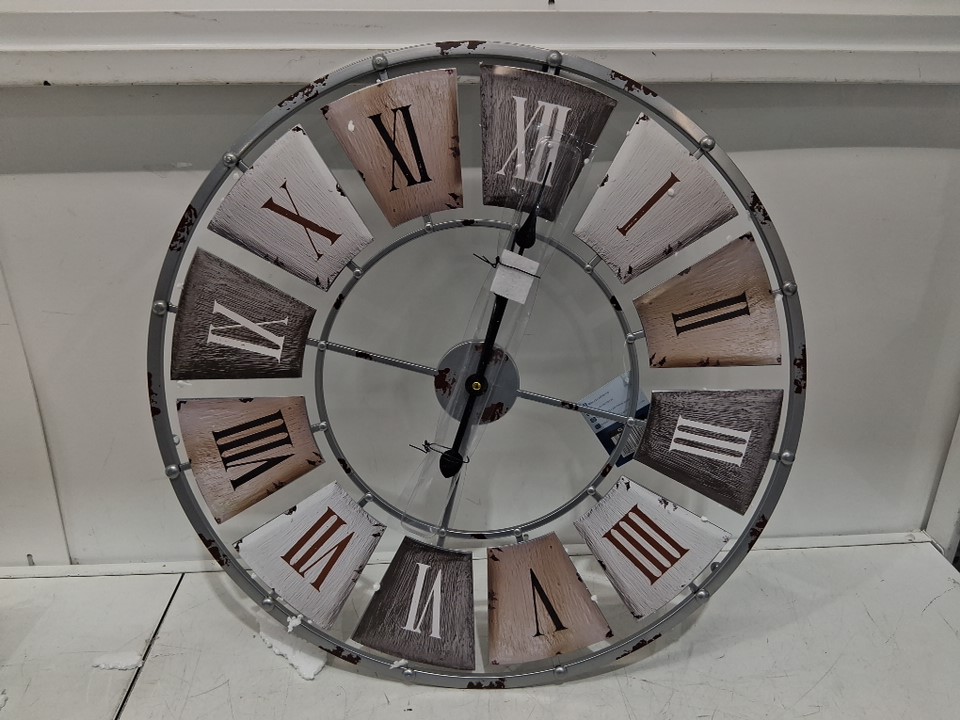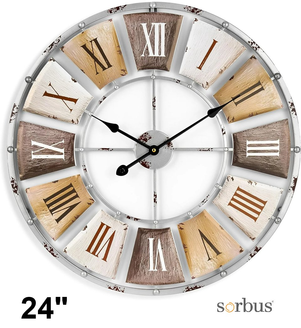Sorbus Decorative OVERSIZED FARMHOUSE Wall Clock - 24" - GREY/BROWN (MODEL: CLK-MTL)