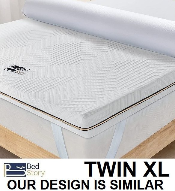 BEDSTORY 3" MEMORY FOAM MATTRESS TOPPER WITH ELASTIC ANCHOR STRAPS - TWIN XL - 38" x 80" - WHITE