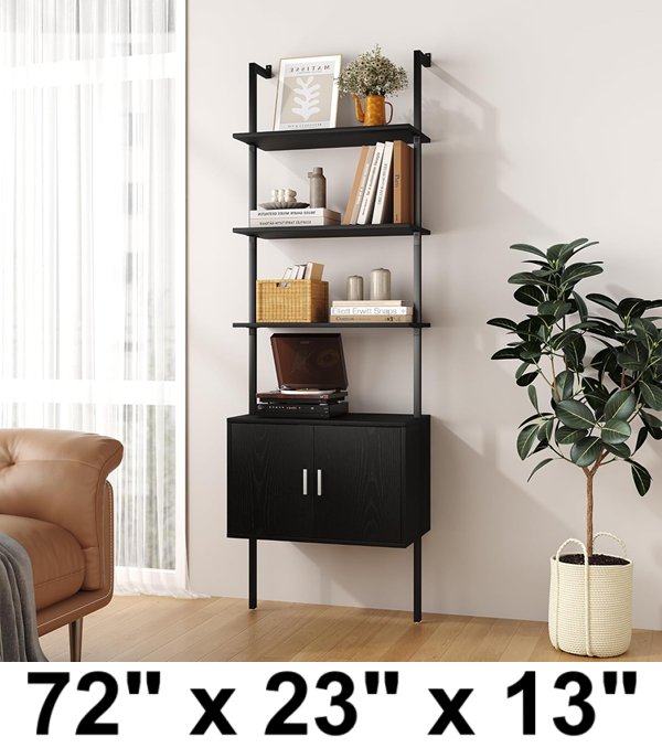 gadroad 5-tier ladder bookshelf with metal frame - 72" x 23" x 13" - black wood