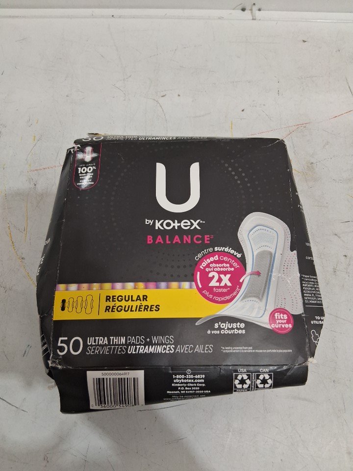50PK KOTEX UBALANCE ULTRA THIN PADS with WINGS WITH CHARCOAL - REGULAR