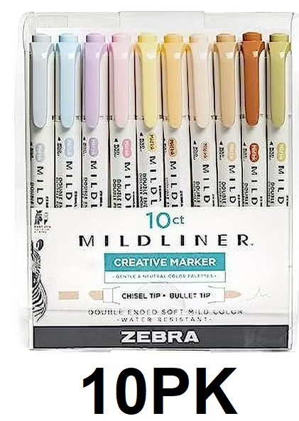10pk mildliner creative marker double ended chisel tip & bullet tip water resistant markers