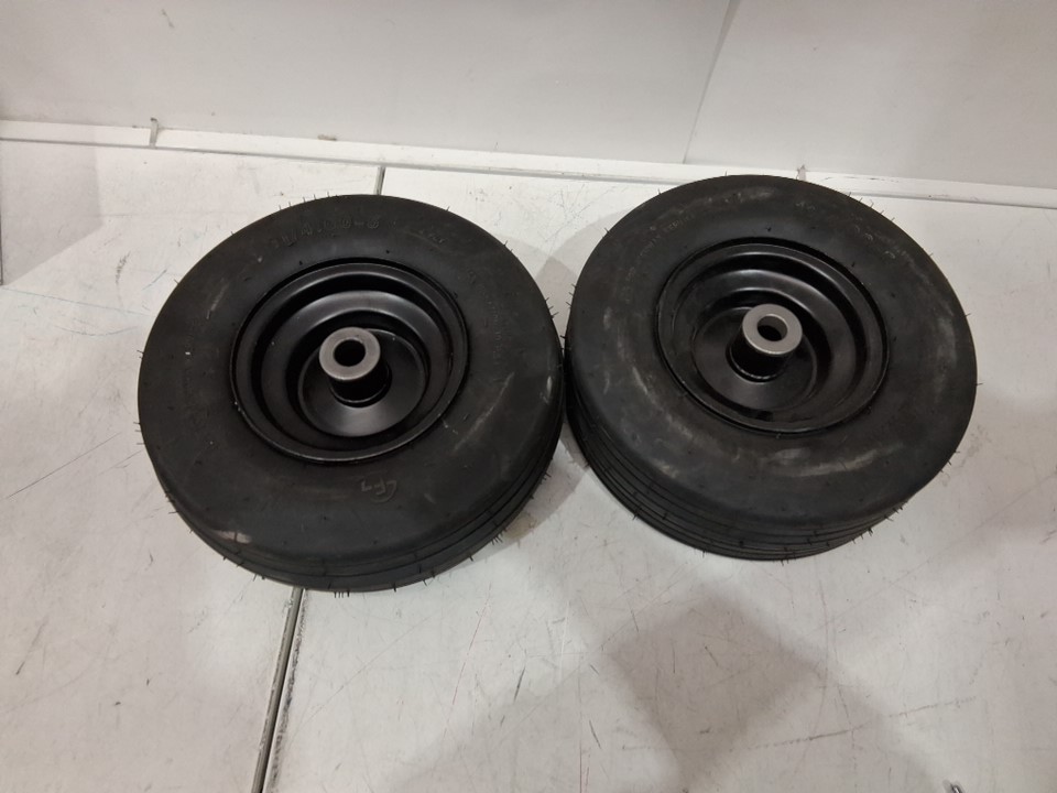 2PK AREMAE Flat Free Solid Rubber Replacement Tires FOR ZERO TURN LAWN MOWERS - 11" X 4.00-5" - 3/4" OR 5/8" BUSHING - 3.4"-4"-4.5-5" Centered Hub - BLACK