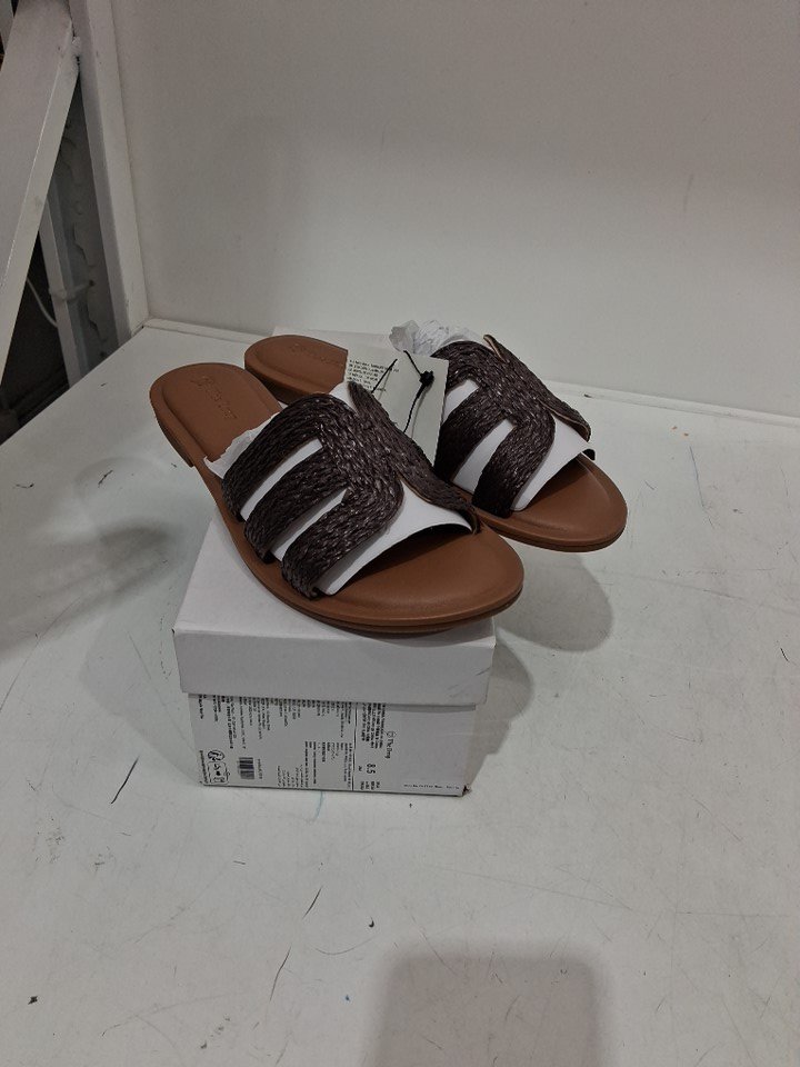 women's the drop Monika Flat H-Band Slide Sandal - 8.5 - Coffee Bean Raffia