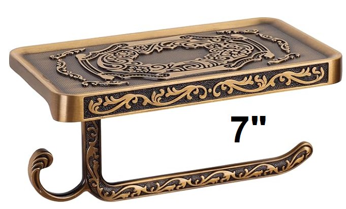 SDH Antique Brass Toilet Paper Holder with Shelf Space - gold