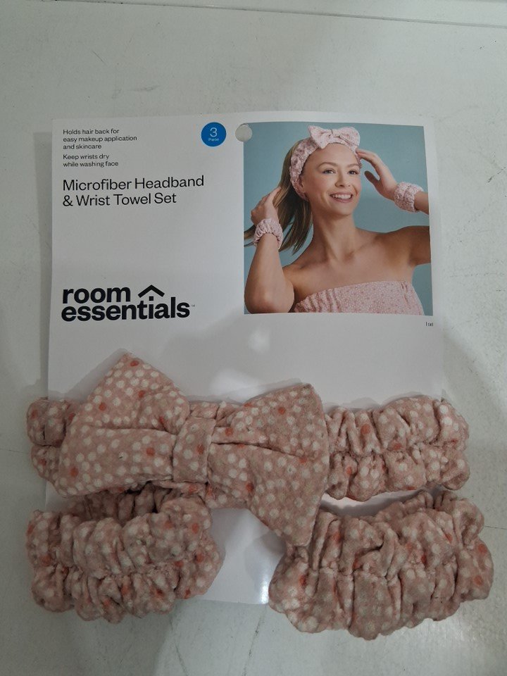 3PC ROOM ESSETIALS microfiber headband wrist towel SET - Polka Dot/Pink