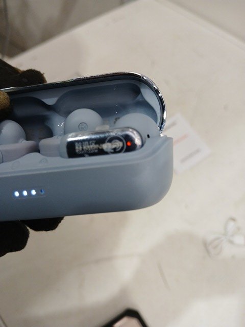 There are some finger prints along the case, however the film is still on the earbuds. Tested for power only.