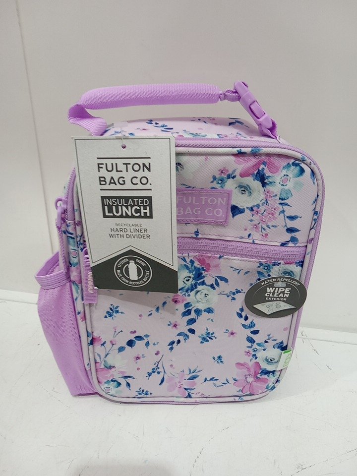 fulton bag co upright insulated lunch bag with hardliner and divider - Floral Lilac