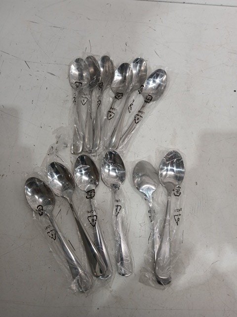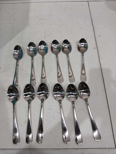 12PK AMAZON BASICS stainless steel DINNER SPOONS WITH pearled ROUND EDGE - STAINLESS STEEL