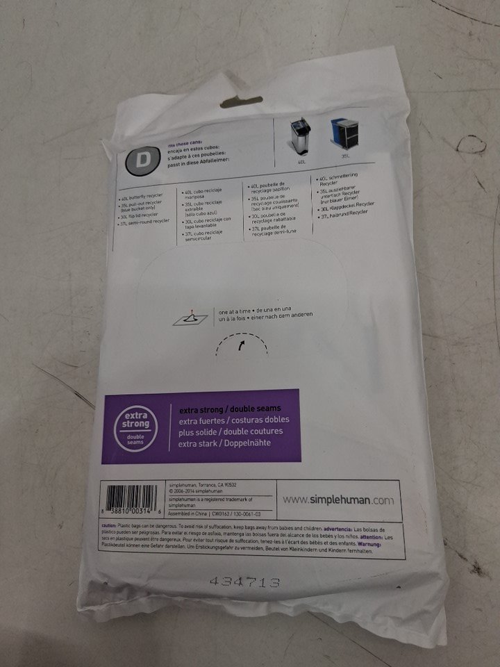 20PK SIMPLEHUMAN CUSTOM FIT GARBAGE BAGS - 20L - white (model: D)